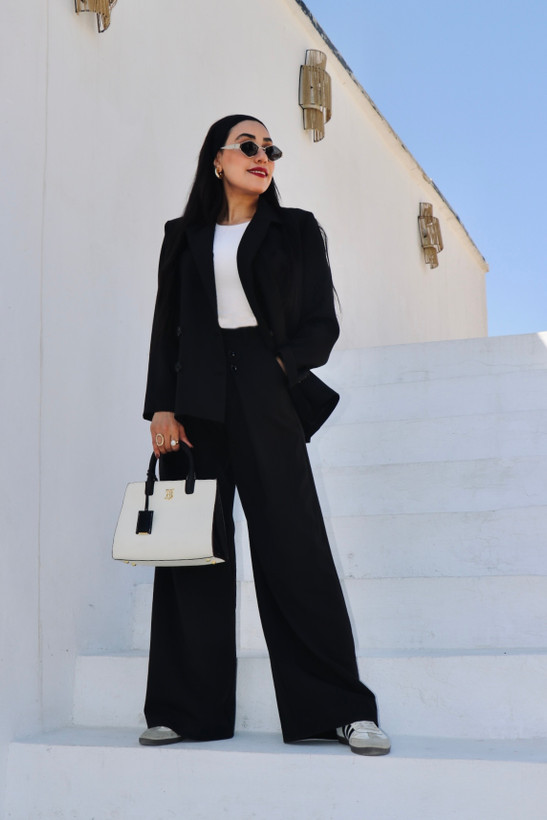 این کت و شلوار ست بیسیک با جنس کرپ مازراتی گرم بالاست،جلوی کار کاملا لایی کوبی شده و ایستایی مناسبی دارد.